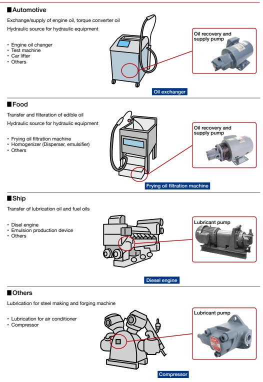 · 저속 및 고속까지 회전 범위가 넓어 윤활 및 이송용 등 용도가 다양함