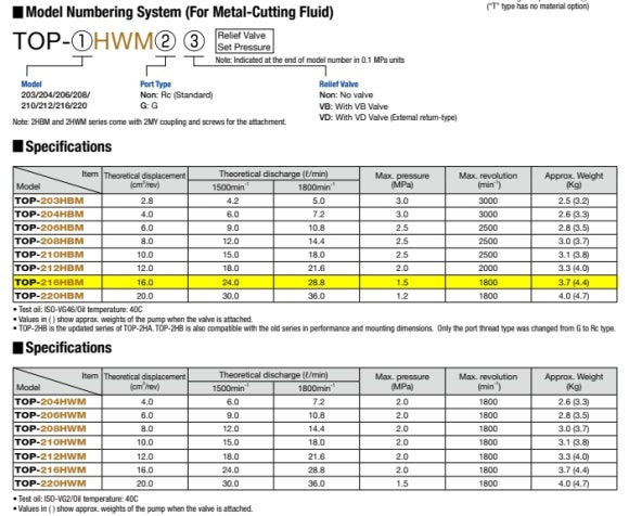 쿨란트펌프 / TOP-2WM시리즈 / 트로코이드펌프 / Trochoid pump / 고압 쿨란트용펌프 / 2HWM TYPE
