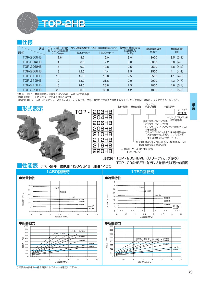 펌프사양: TOP-220HBEVB(Relief valve 부착형)