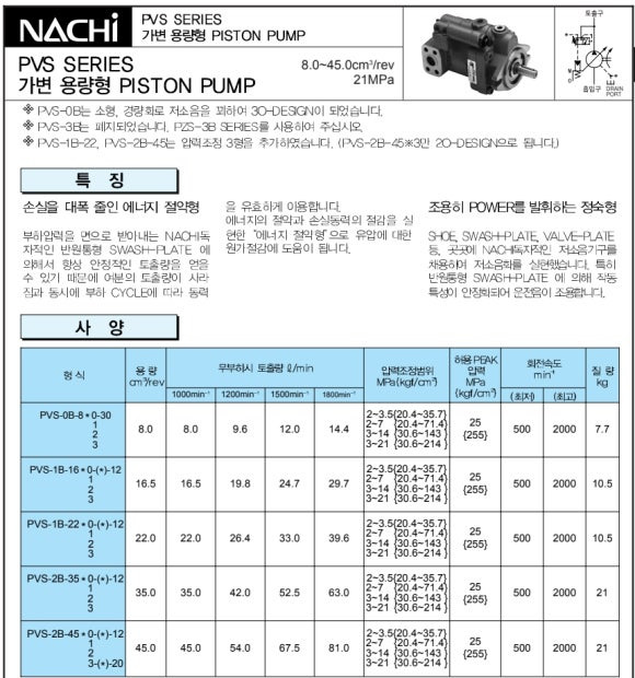 [나찌 피스톤 펌프 / NACHI PISTON PUMP / 가변 피스톤 펌프 / PVS]