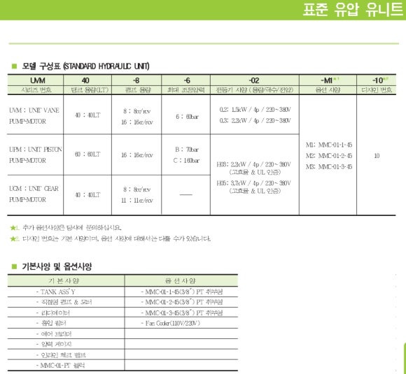 유압유니트는 유압펌프, 전기 모터 외 SPEC 사양으로 제작하여