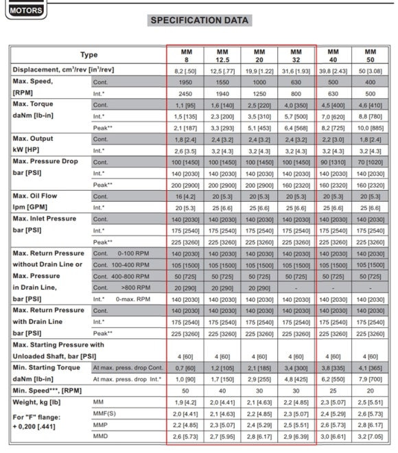 참고자료: MM20CP 유압모터 사양서