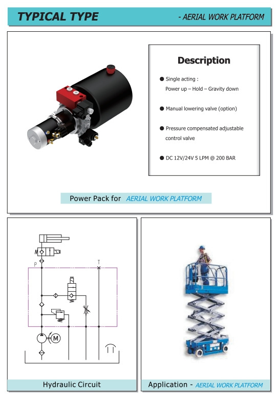 본 모델은 1.3kW DC24V 모터와 2.1cc 유압 기어펌프,