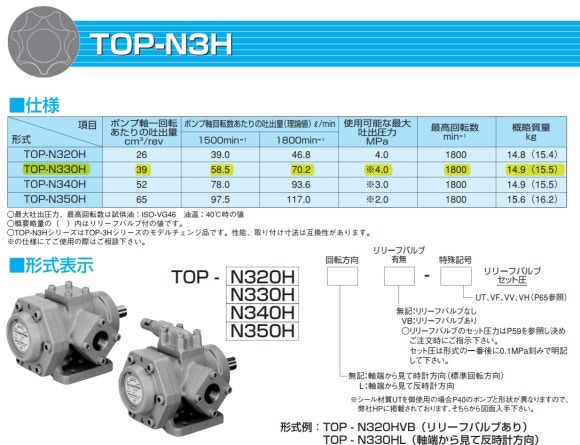 NOP 트로코이드 펌프 TOP-N3H 시리즈
