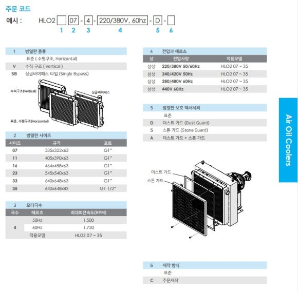 하이드로링크(Hydrolync) HLO3 공랭식 유압오일쿨러를 비롯해