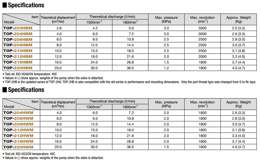 NOP, TOP, 동산기공, 아륭펌프, 렉스로스, REXROTH, 유켄, YUKEN, 플로우포스, FLOWFORCE, 하이드로링크, HYDROLYNC, 세원셀론텍, 세원이앤씨, HYDAC, 이튼비커스, EATON, 댄포스, DANFOSS, 건영기공, 엠플러스에스, M+S, 득인기공, BESKO, 다이킨, DAIKIN, 데니슨, DENISON, 도키맥, TOKIMEC, 케이시시정공, KCC, 파커, PARKER, 대성나찌, NACHI, 훌루테크, 가와사키, 하이드로텍, HYDROTEK