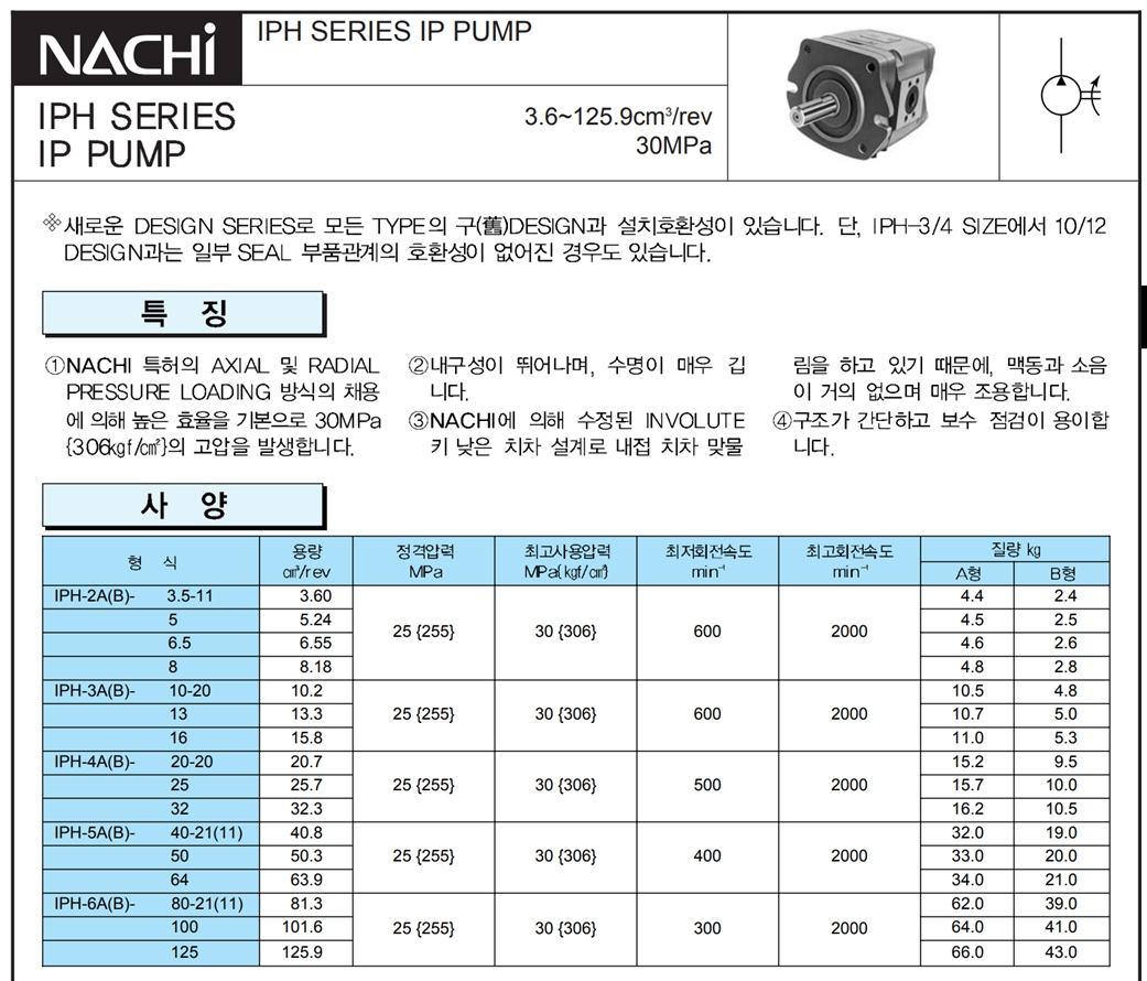 NACHI 기어펌프는 아래와 같은 특징이 있으니 참고 바랍니다.