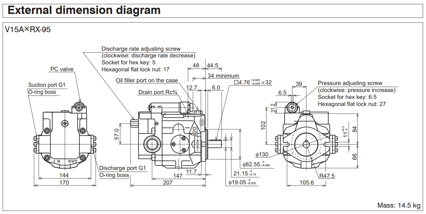 V15A-2RX-95 펌프는 Side port 모델입니다.