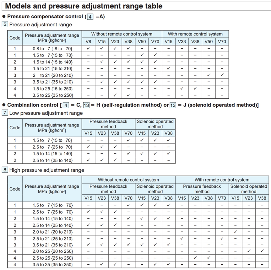 V 시리즈 피스톤 펌프 / V15A2RX 모델 압력 범위 및 유량조절 범위 안내