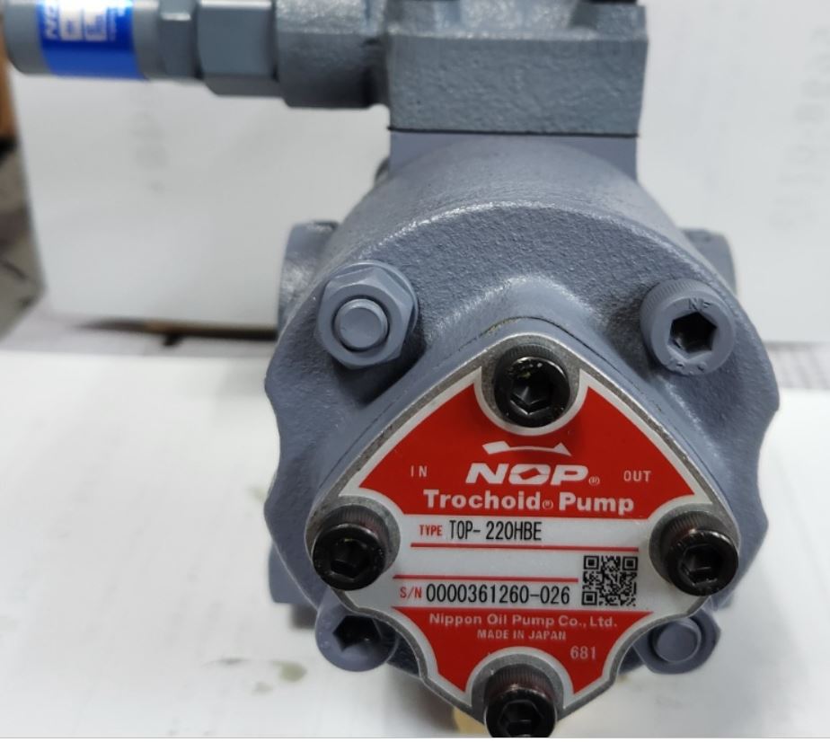 NOP[Nippon oil pump] 트로코이드 펌프 명판 실물 사진입니다.