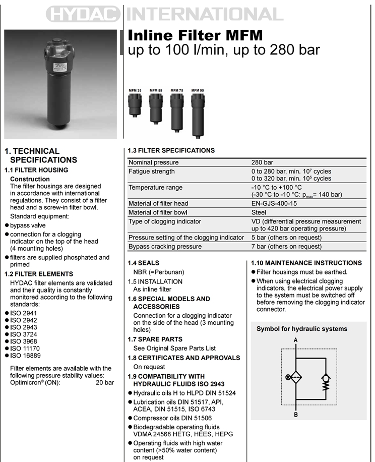 HYDAD INLINEFILTER /HYDAC FILTER / 고압용 필터 / 라인필터 / 인라인 필터 / INLINE FILTER / MFM 필터 / MFM 라인필터 / MFM FILTERELEMENT /