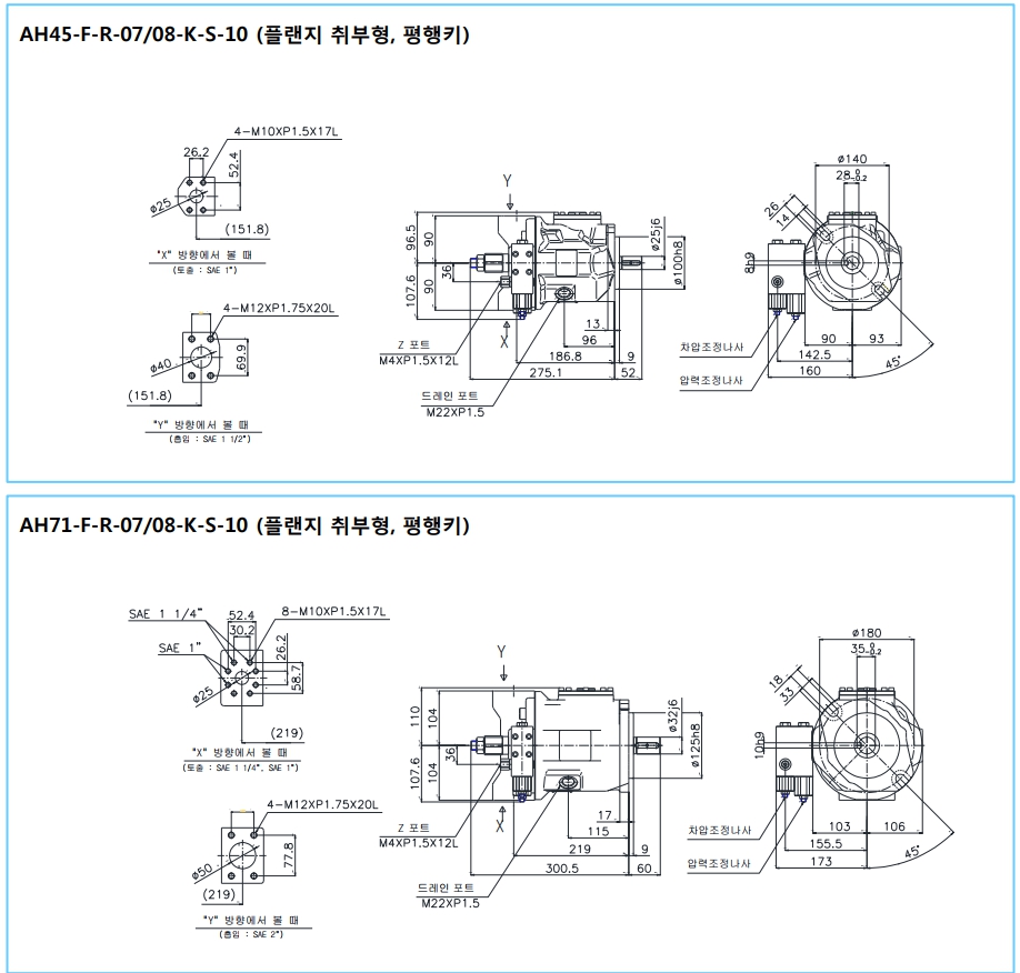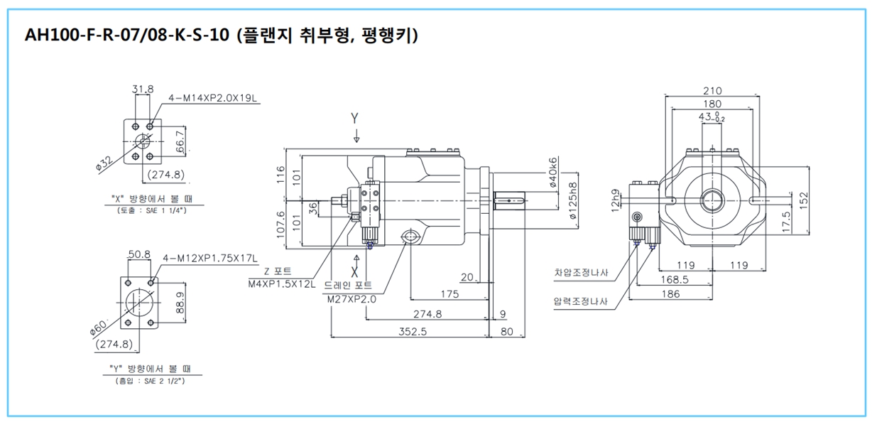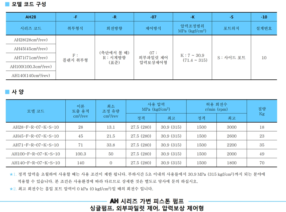 SEWON PISTON PUMP / 세원 피스톤 펌프 / 세원 가변 피스톤펌프 / 유압펌프 / REXROTH 펌프 대체사양 / REXROTH A10VSO 대체용