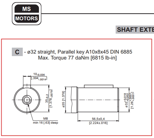 SHAFT Size: Straight Key type 32Ø