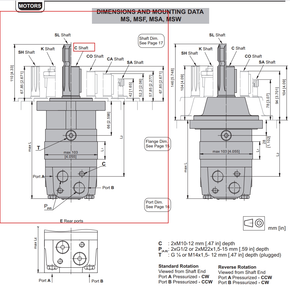 M+S 유압 모터는 Side port 타입으로 EU(Euro pean Version) 입니다.
