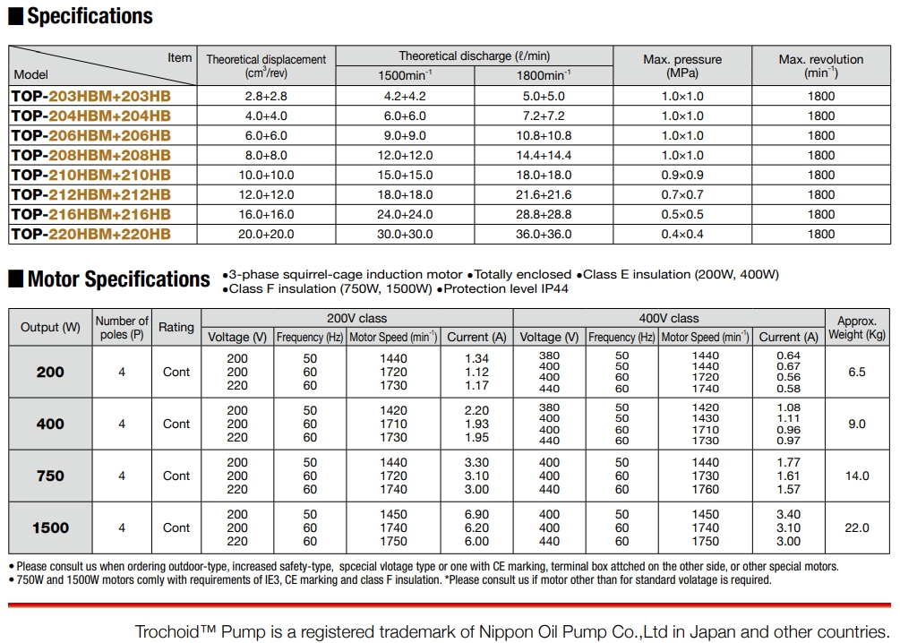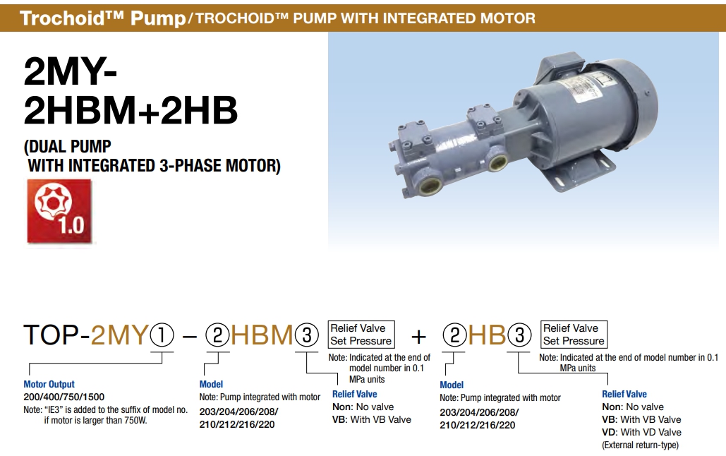 NOP Trochoid pump / 윤활유 이송용 펌프 / TOP-2HB시리즈 /