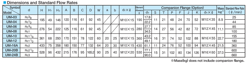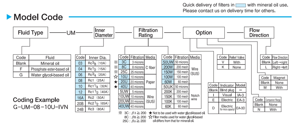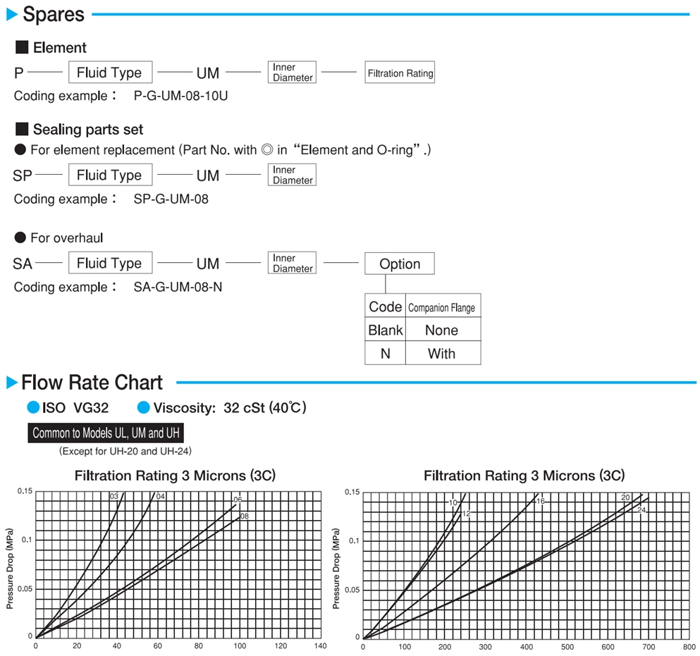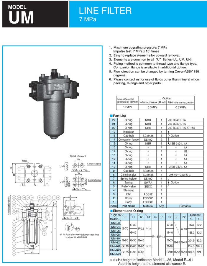 · 필터 엘리먼트는 "U" 시리즈 호환 가능 모델