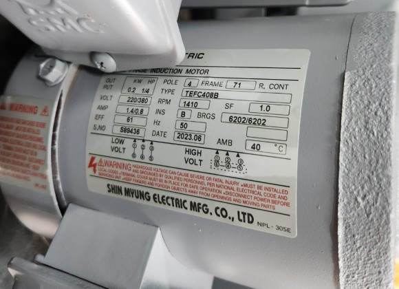 모터 스펙은 1/4HP 모델로 국산(신명)으로 제작 됩니다.