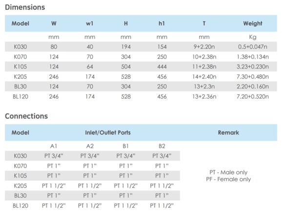 · 최대 사용 압력: 권장 -30bar, Max-40bar
