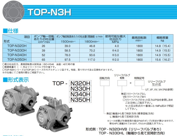 중용량펌프: TOP-N3H 시리즈 / 트로코이드펌프 / 트로코이드기어펌프