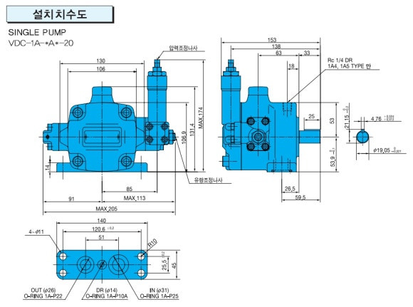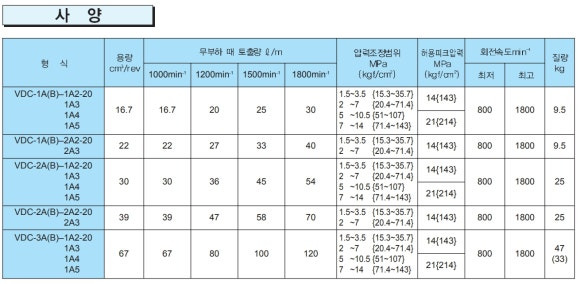 VDC 시리즈 유압펌프 가변베인펌프 VDC-1A-1A5-20 모델을 소개합니다.