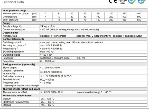 · 압력범위: 0~160bar