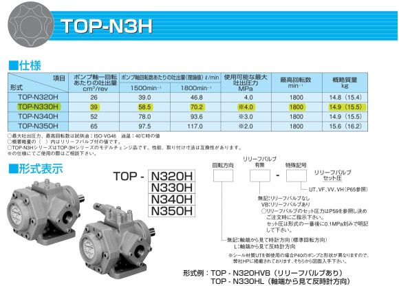 중용량펌프: TOP-N3H 시리즈 / 트로코이드펌프 / 트로코이드기어펌프