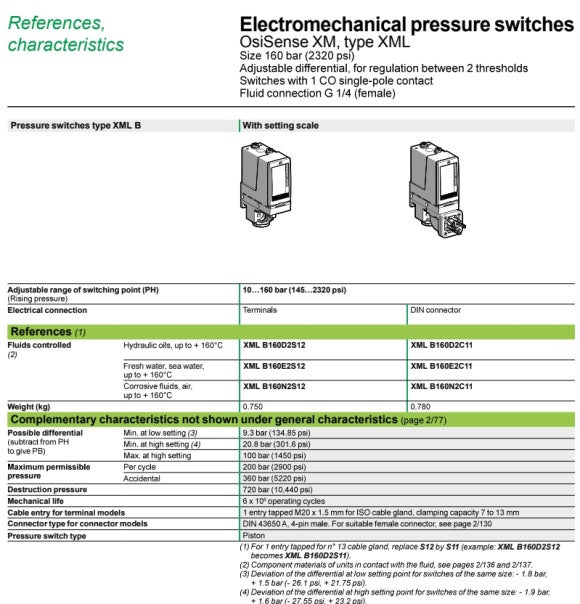 슈나이더 압력스위치 / 텔레메카닉 압력스위치 / XML 압력스위치